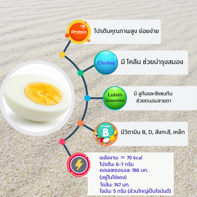 💡 ทางเลือก: ใช้ “1 ฟองเต็ม + 2 ไข่ขาว” จะได้โปรตีนสูงแต่ลดคอเลสเตอรอล
