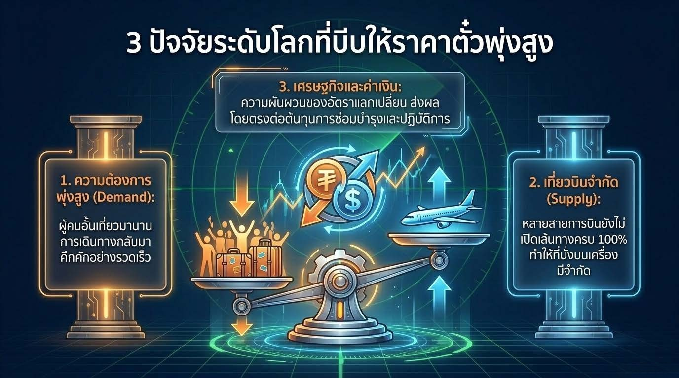 🌍 ทำไมช่วงนี้ตั๋วเครื่องบินแพงขึ้นทั่วโลก?