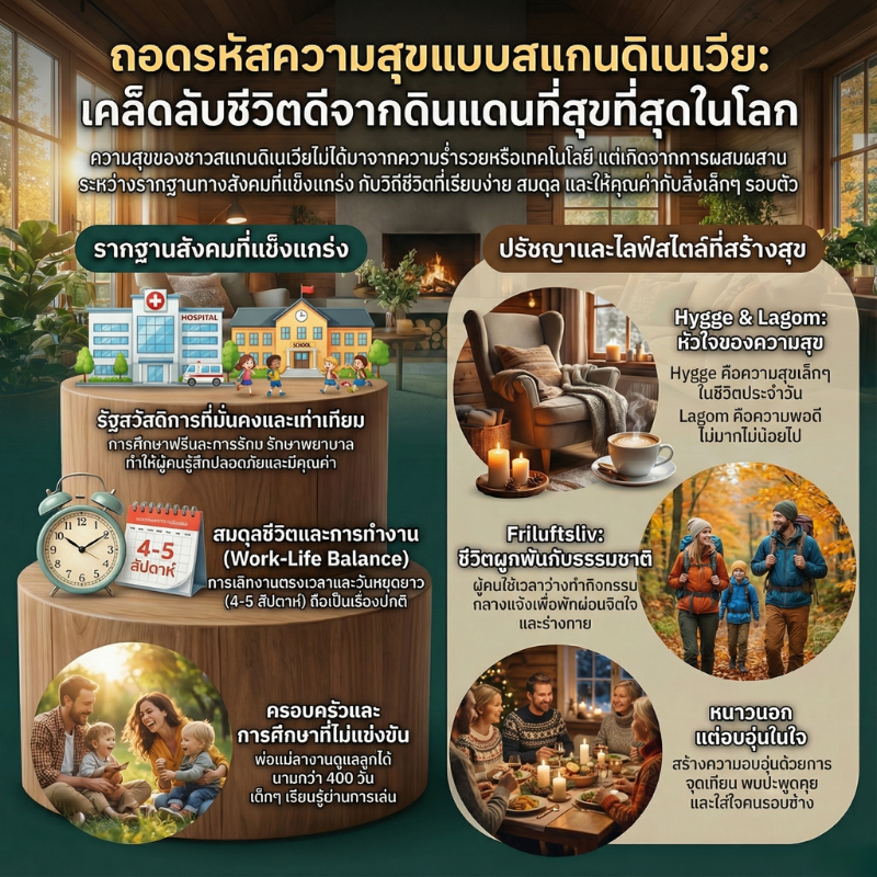 ประเทศในแถบสแกนดิเนเวียคือภาพสะท้อนของ “ชีวิตที่สมดุล” ทั้งร่างกาย จิตใจ และสังคม พวกเขาไม่ได้มีความสุขเพราะเงินทอง แต่เพราะรู้จัก “คุณค่าของสิ่งเล็ก ๆ รอบตัว” และใช้ชีวิตด้วยความเรียบง่ายและเมตตา