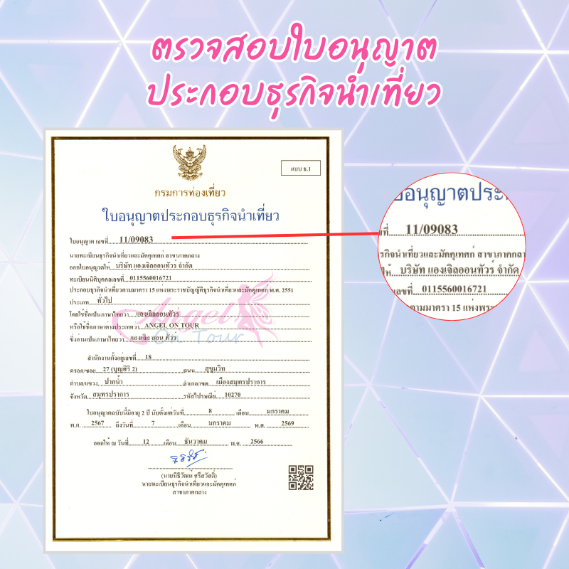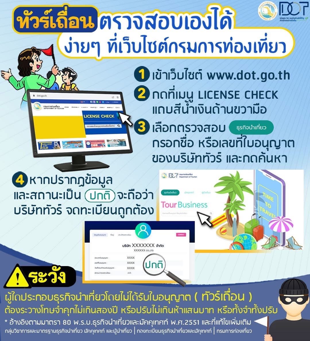 1. ตรวจสอบใบอนุญาตประกอบธุรกิจนำเที่ยว