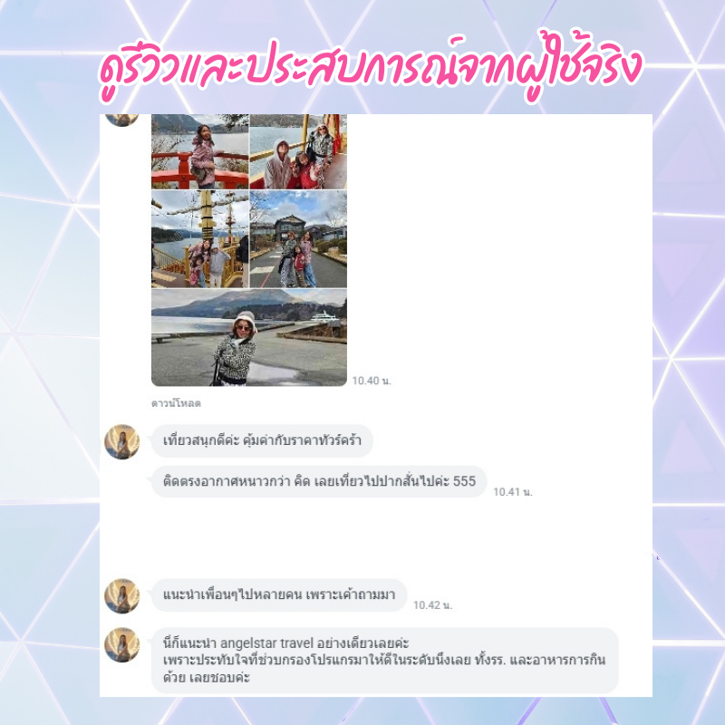 การอ่านรีวิวจากนักท่องเที่ยวคนอื่นๆ จะช่วยให้คุณเห็นภาพการให้บริการของบริษัททัวร์มากขึ้น ลองค้นหาชื่อบริษัทใน Google, Facebook, หรือ Pantip เพื่อดูว่ามีเสียงตอบรับเชิงบวกหรือปัญหาที่ถูกพูดถึงบ่อยๆ การเลือกบริษัทที่ได้รับรีวิวดีต่อเนื่องย่อมสร้างความมั่นใจได้มากกว่าบริษัทที่ไม่มีข้อมูลเลย
