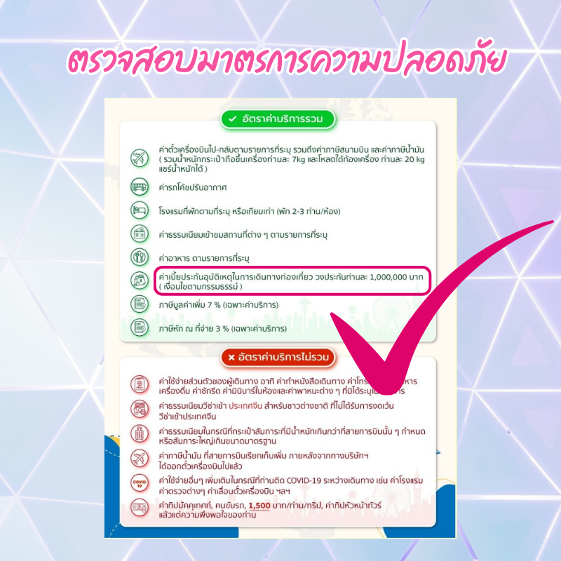 ก่อนตัดสินใจจองทัวร์ ควรสอบถามโปรแกรมการเดินทางทั้งหมดอย่างชัดเจน เช่น โรงแรมที่พักระดับกี่ดาว อาหารที่รวมไว้แล้วมีกี่มื้อ มีกิจกรรมเสริมอะไรบ้าง และมีค่าใช้จ่ายเพิ่มเติมหรือไม่ โปรแกรมที่ละเอียดและโปร่งใส จะสะท้อนถึงความจริงใจของบริษัททัวร์