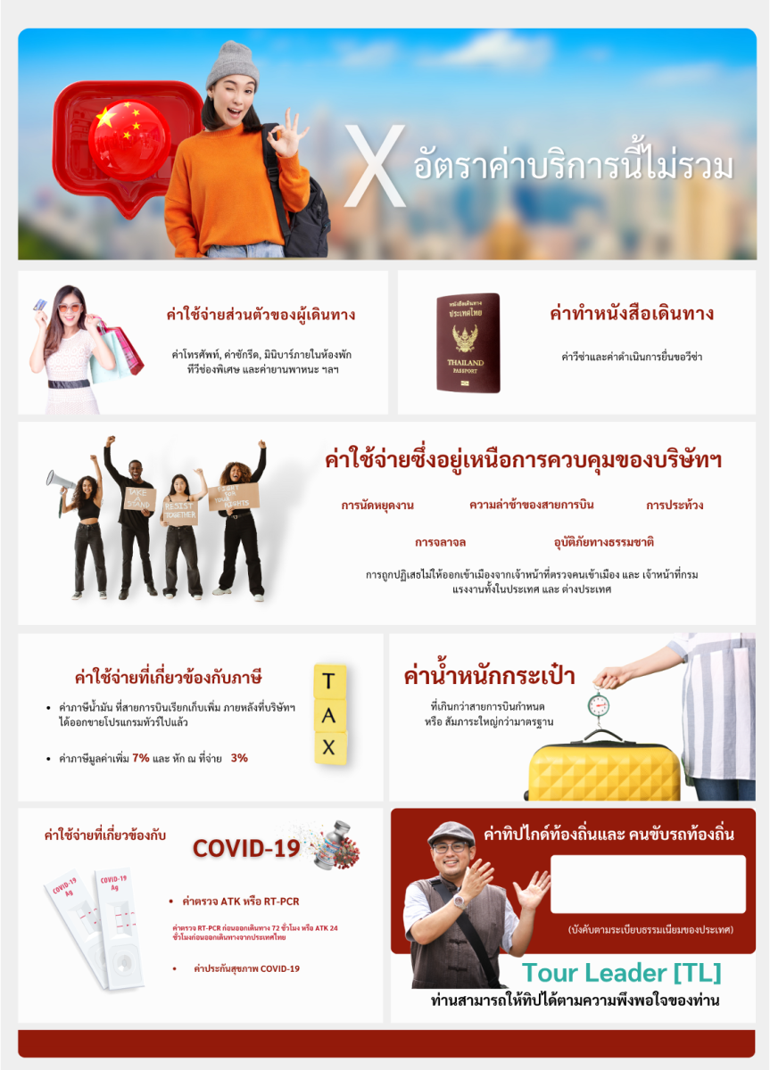 หมายเหตุ : ขอสงวนสิทธิ์ในราคานี้สำหรับสมาชิก 8 ท่านขึ้นไปเท่านั้น หากต่ำกว่านี้จะมีการเรียกเก็บเพิ่มตามจริงที่ออกเดินทาง