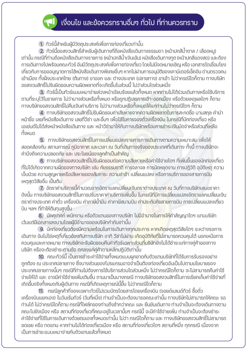 | 01 พ.ค. 69 - 04 พ.ค. 69 | 23,990 บาท | 7,000 บาท | สอบถามเพิ่มเติม | จอง |
