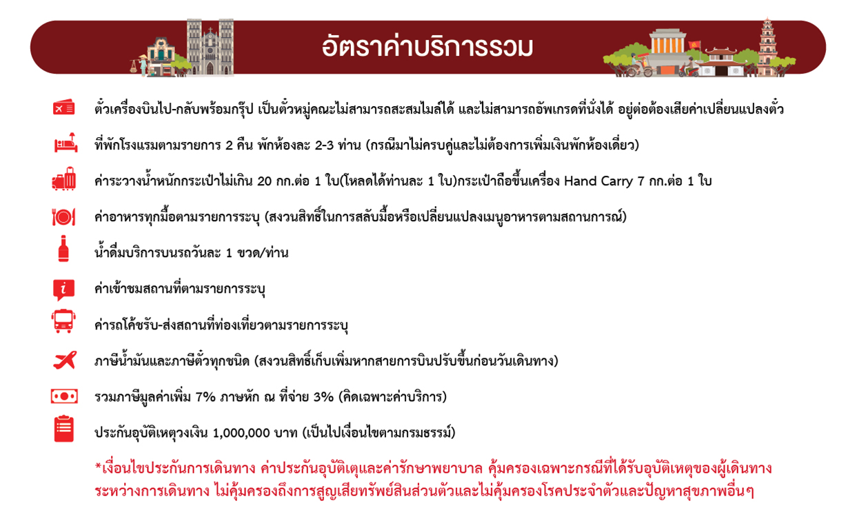 | 01 พ.ค. 69 - 03 พ.ค. 69 | 15,999 บาท | 3,500 บาท | 17,999 บาท | จอง |