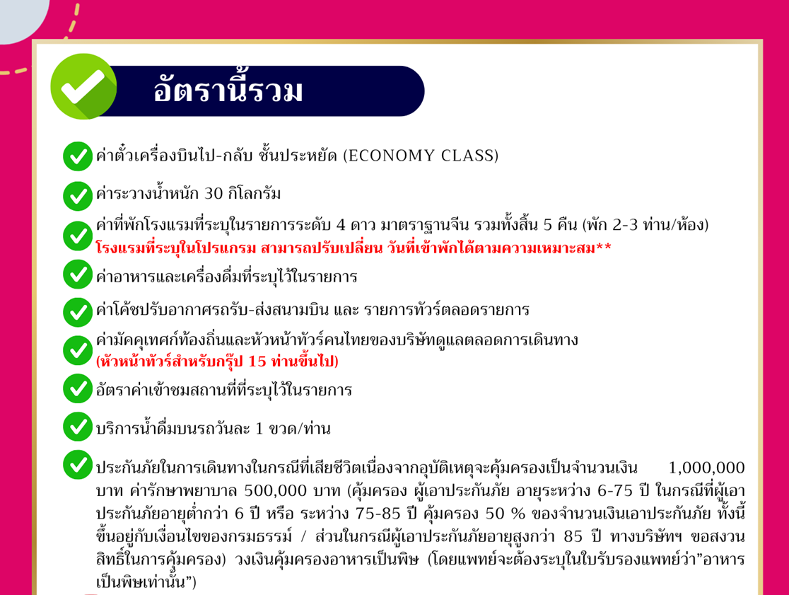 (รวมค่ารถราง และค่าเครื่องเล่นบนสวนสนุก ยกเว้น พิพิธภัณฑ์หุ่นขี้ผึ้ง ที่ไม่รวมให้ในรายการ มีค่าเข้า 5 USD/ ท่าน)