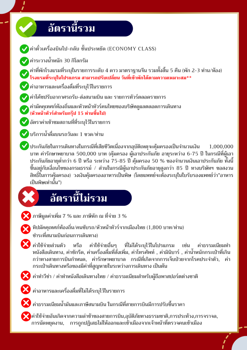 | 03 พ.ค. 69 - 06 พ.ค. 69 | 10,900 บาท | 2,900 บาท | 10,500 บาท | จอง |