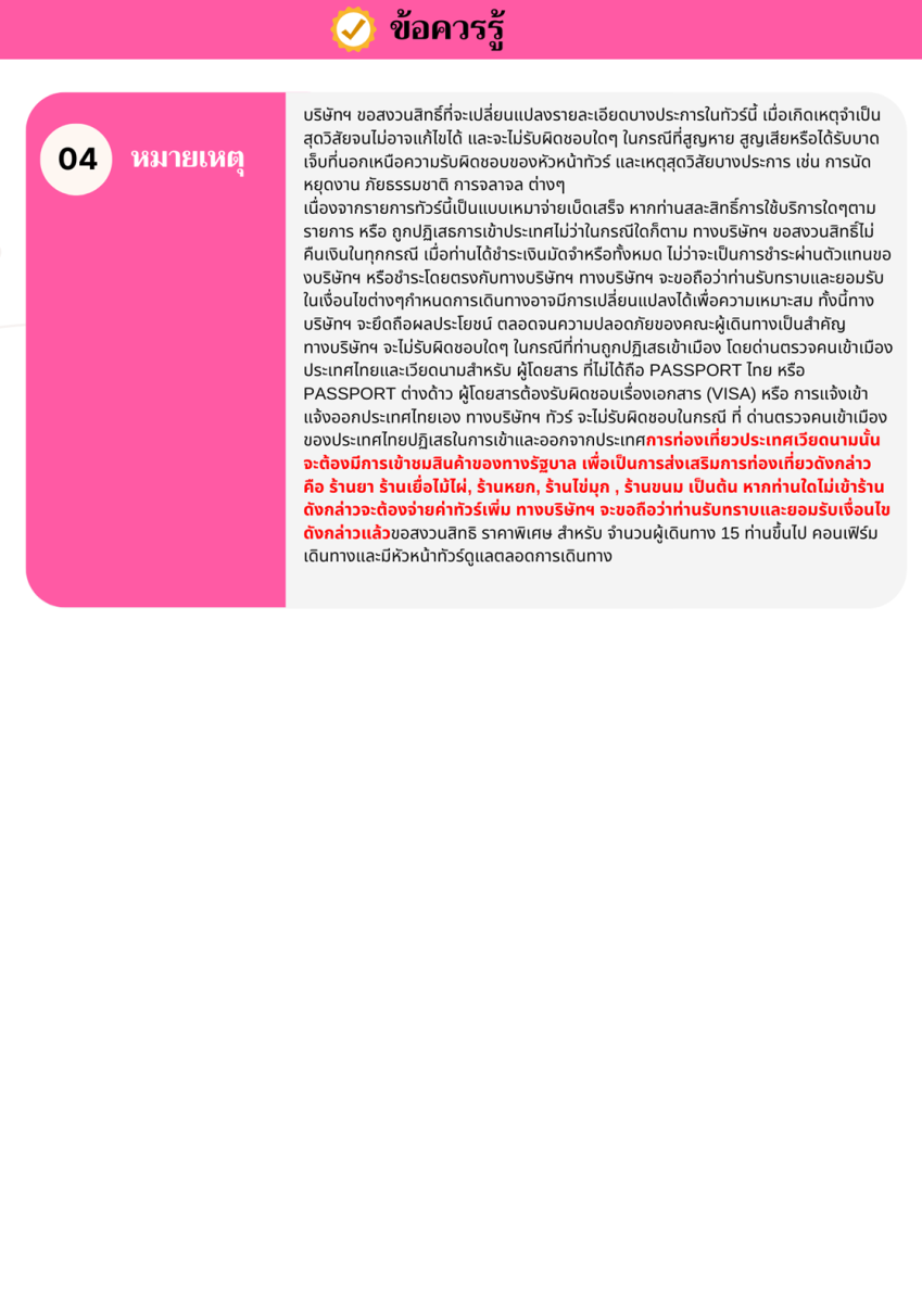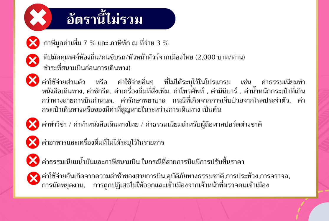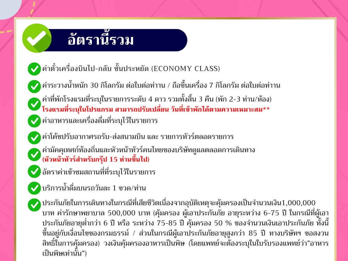 | 03 พ.ค. 69 - 06 พ.ค. 69 | 9,888 บาท | 2,900 บาท | 9,888 บาท | จอง |