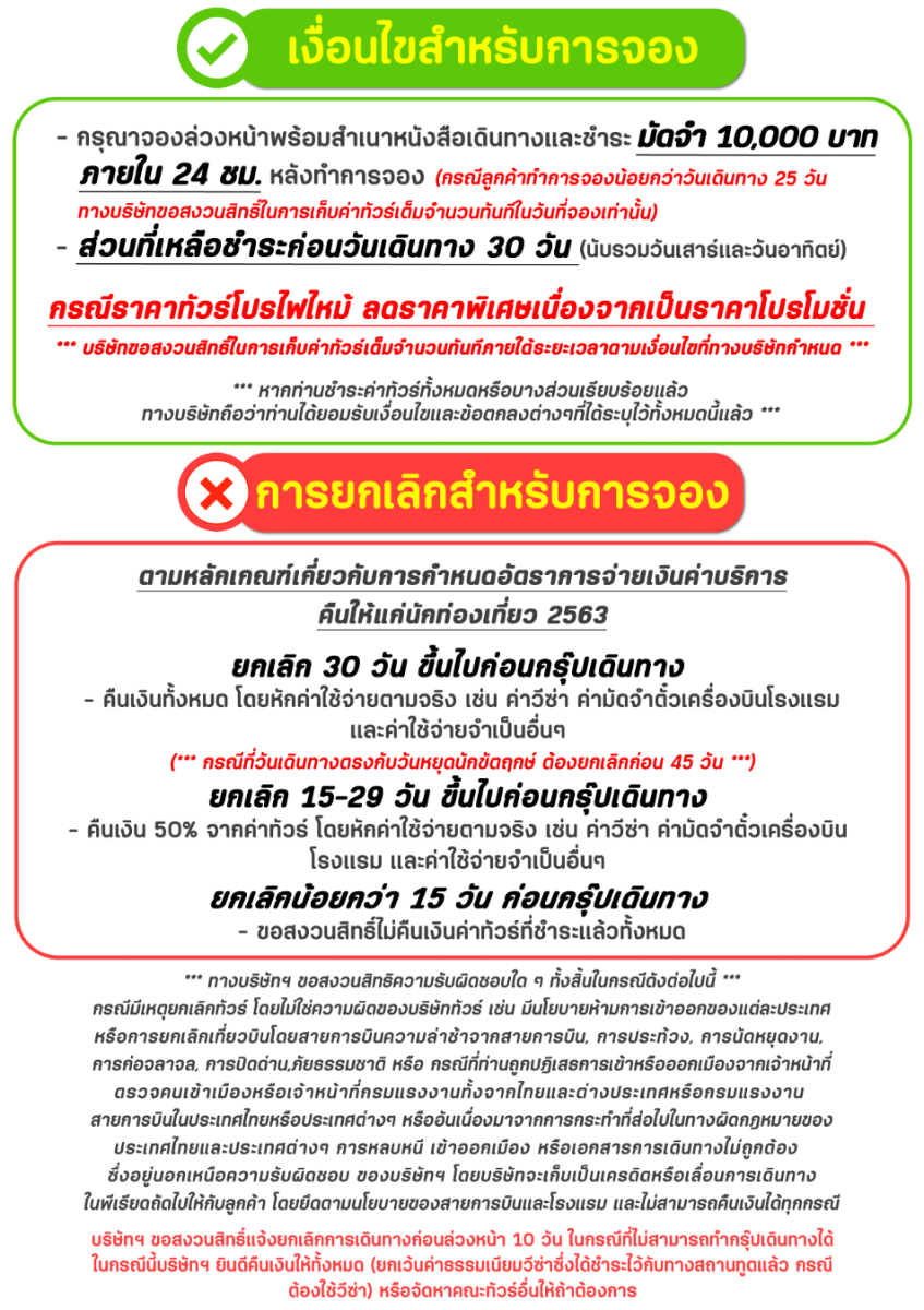 | 29 ส.ค. 69 - 03 ก.ย. 69 | 19,999 บาท | 5,000 บาท | สอบถามเพิ่มเติม | จอง |