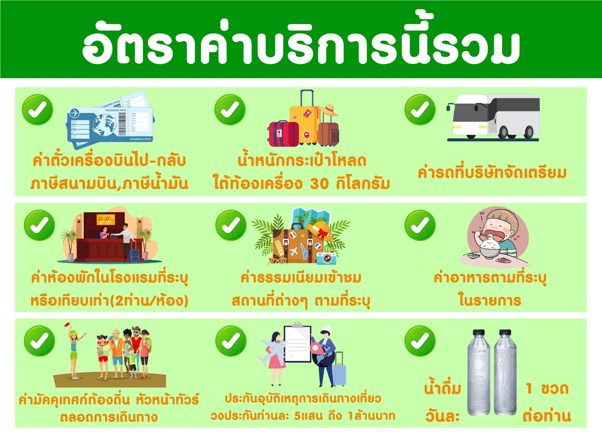 | 01 พ.ค. 69 - 04 พ.ค. 69 | 21,112 บาท | 4,500 บาท | สอบถามเพิ่มเติม | จอง |