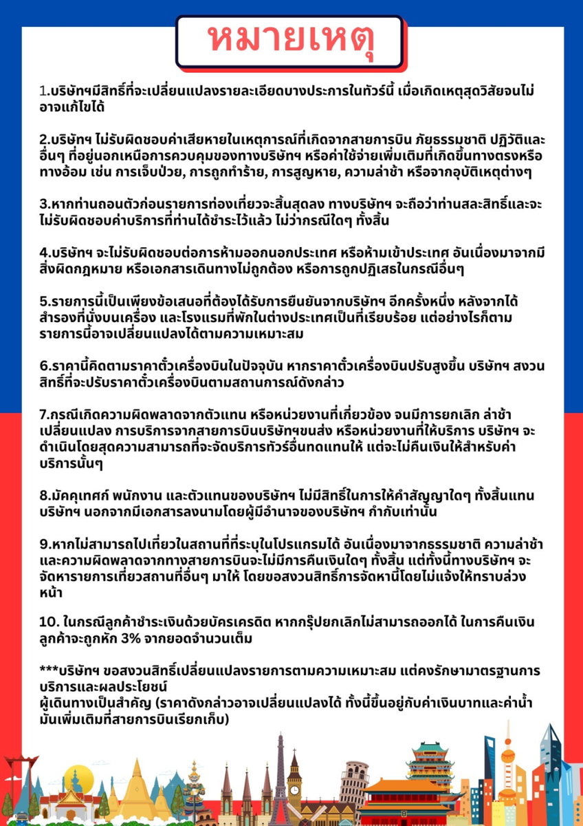 11.00 น. คณะพร้อมกันที่ สนามบินสุวรรณภูมิ อาคารผู้โดยสาร ขาออก เคาน์เตอร์สายการบิน 9 AIR โดยมีเจ้าหน้าที่ของบริษัทฯ คอยต้อนรับ และอำนวยความสะดวกด้านเอกสาร และสัมภาระ