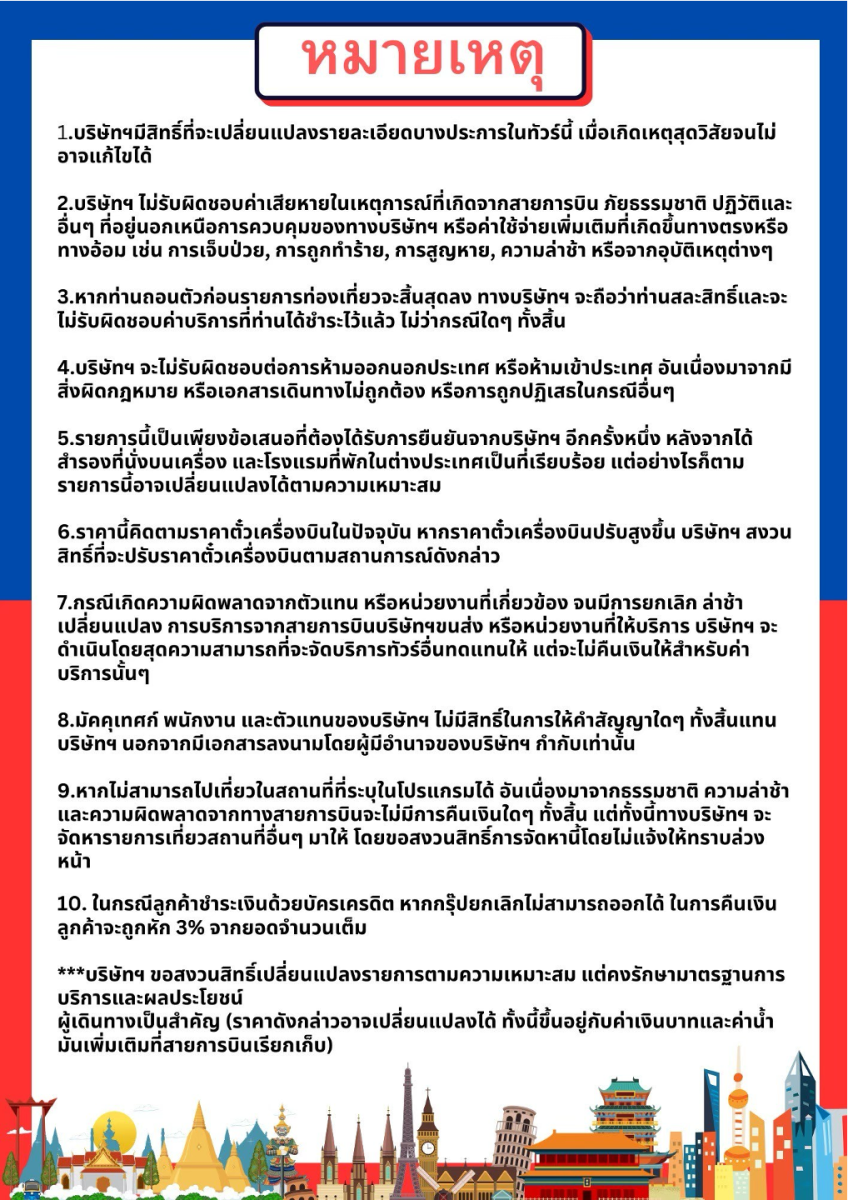 | 21 พ.ค. 69 - 26 พ.ค. 69 | 29,900 บาท | 4,000 บาท | สอบถามเพิ่มเติม | จอง |