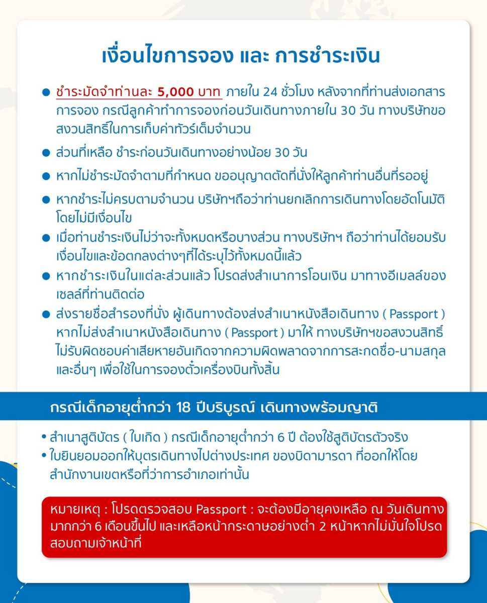 | 17 ก.ค. 69 - 20 ก.ค. 69 | 16,288 บาท | 4,000 บาท | สอบถามเพิ่มเติม | จอง |
