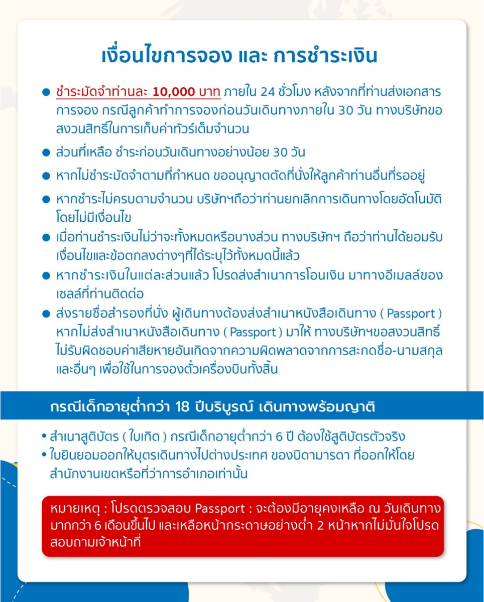 | 21 เม.ย. 69 - 25 เม.ย. 69 | 17,888 บาท | 3,500 บาท | สอบถามเพิ่มเติม |