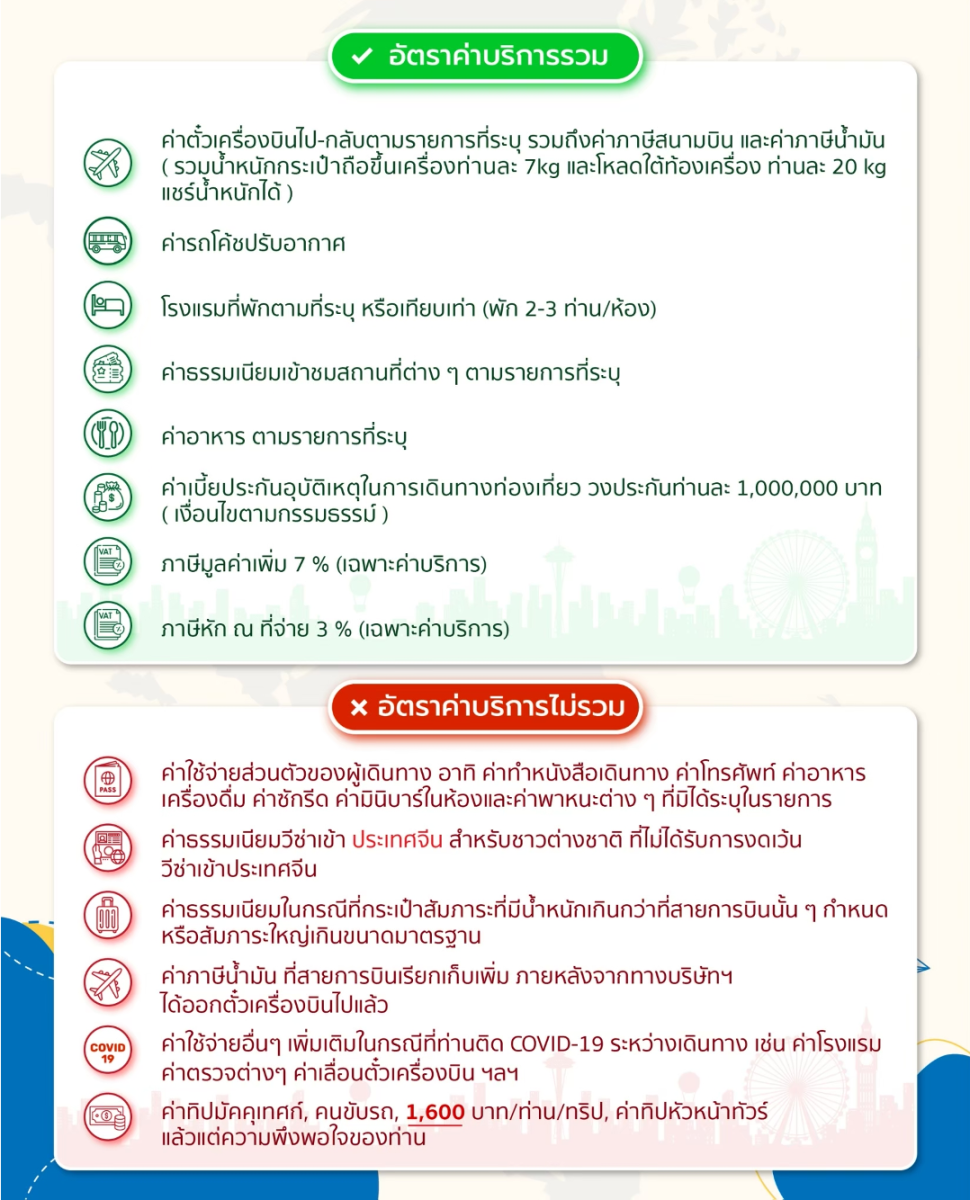 | 29 พ.ค. 69 - 03 มิ.ย. 69 | 16,888 บาท | 3,000 บาท | สอบถามเพิ่มเติม | จอง |