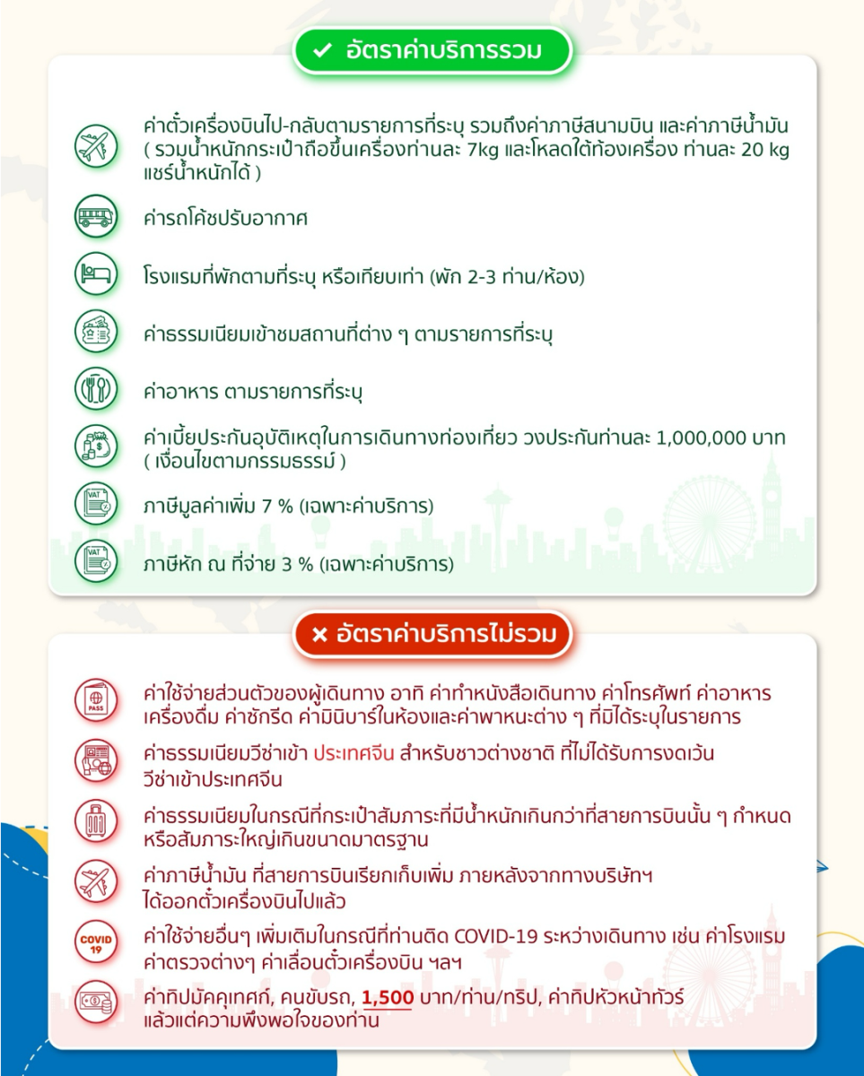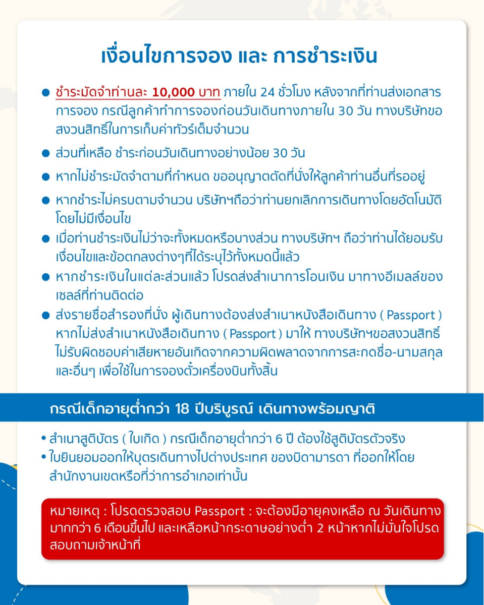 | 26 ต.ค. 69 - 31 ต.ค. 69 | 24,588 บาท | 5,500 บาท | สอบถามเพิ่มเติม | จอง |